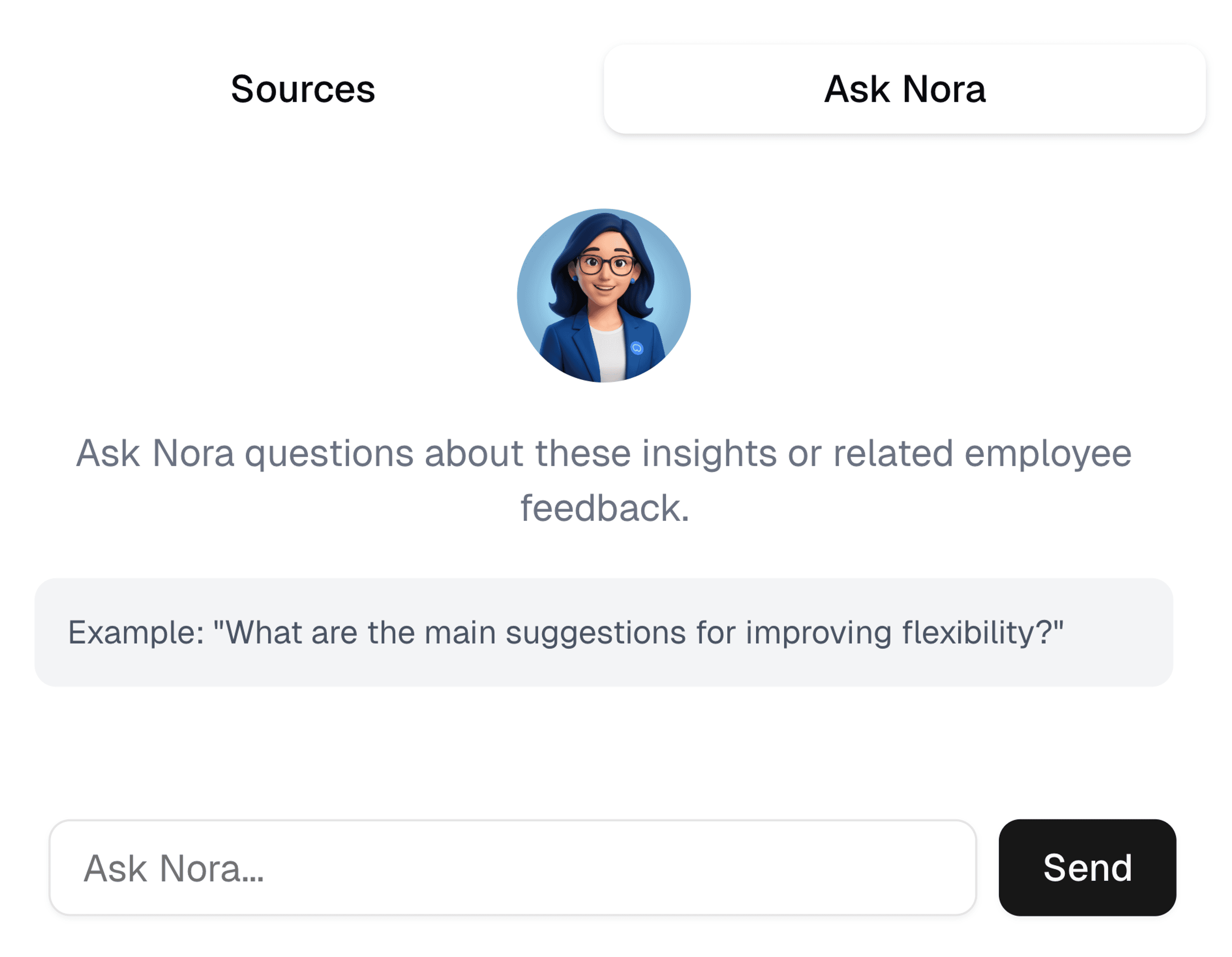 Work with our highly trained, integrated AI coach NORA to develop robust, reliable action plans & change strategies for any of the data you've collected.