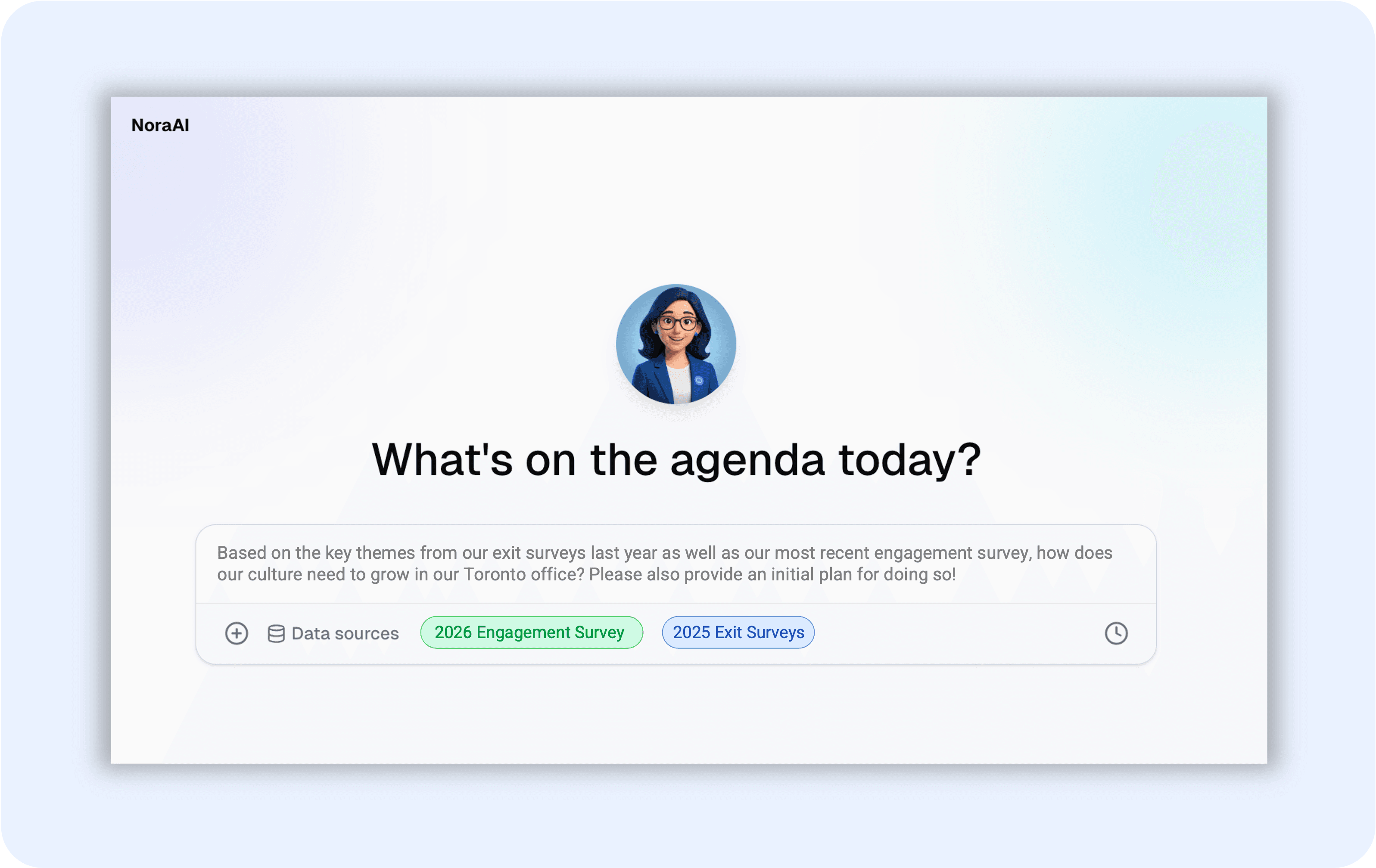 Work with our integrated AI consultant NORA to develop robust, reliable action plans and change strategies for any of the data you've collected.