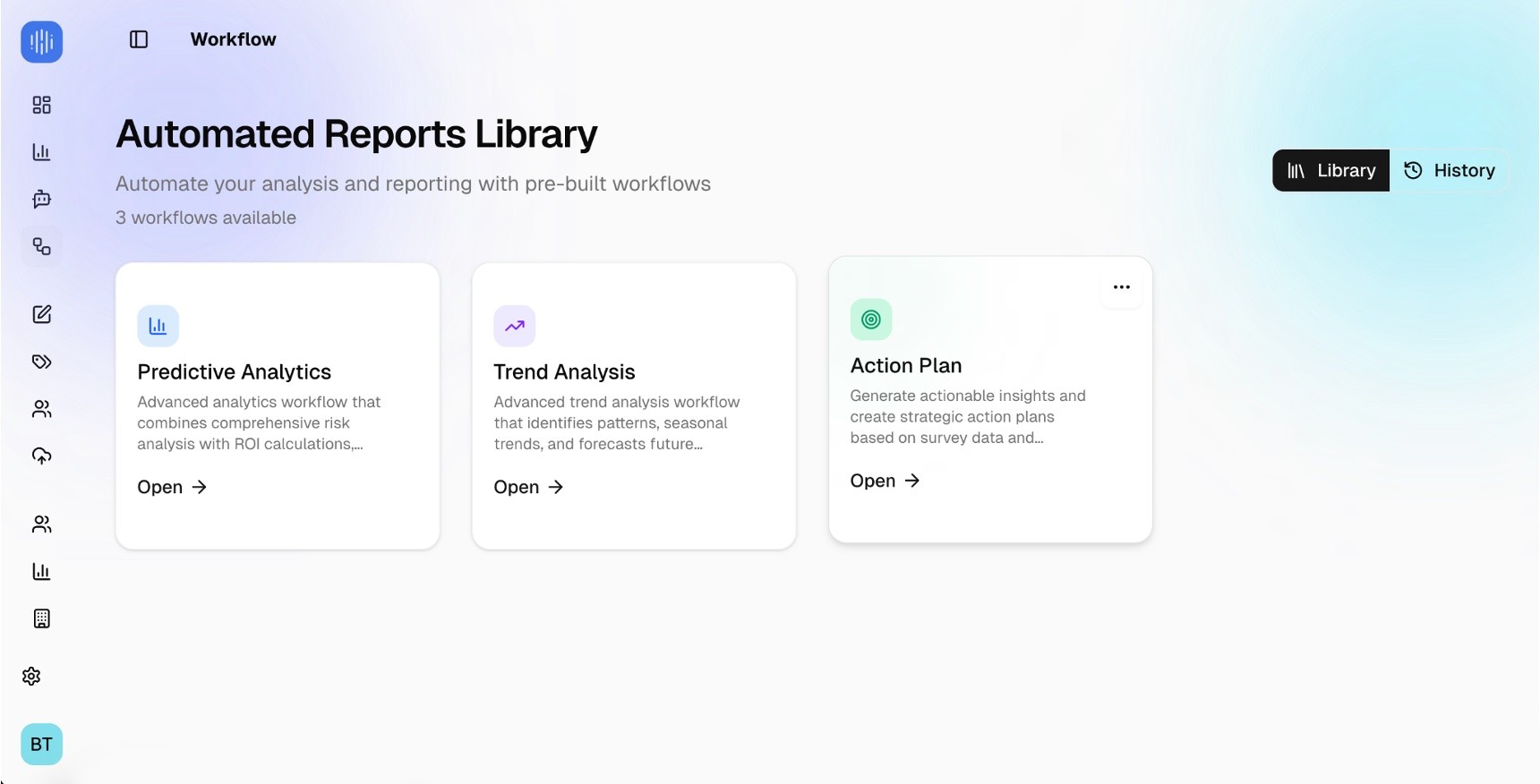Deploy all of your employees surveys from one platform, enabling our AI to uncover deep trends and recommendations that span across different feedback sources.